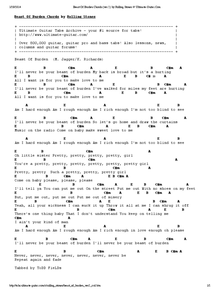 Stones Beast Of Burden Sheet Music For Guitar Tablature Pdf